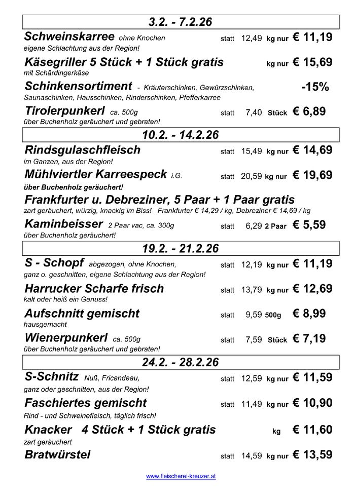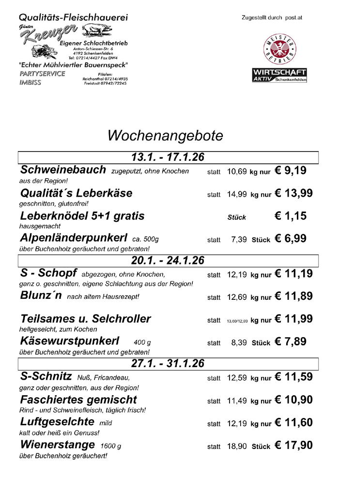 Fleischerei KREUZER, Qualitäts-Fleischhauerei, eigener Schlachtbetrieb, echter Mühlviertler Bauernspeck.